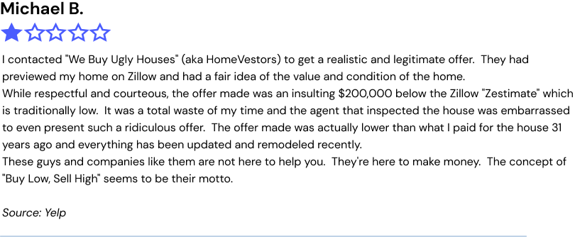 How much does homevestors pay for houses. We did not find results for: Maybe you would like to learn more about one of these? Check spelling or type a new query.